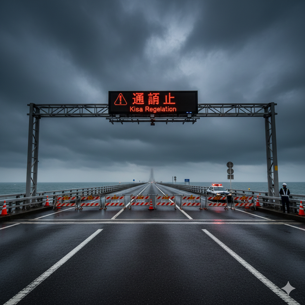 加えて、台風の接近・海上高波・荒天によって橋部に安全確保ができないと判断されると、交通規制が実施されます。