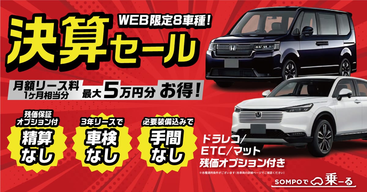 SOMPOで乗ーる|国産・輸入車 約300車種から新車をプロと相談しながら選べる安心・安全のカーリースです。